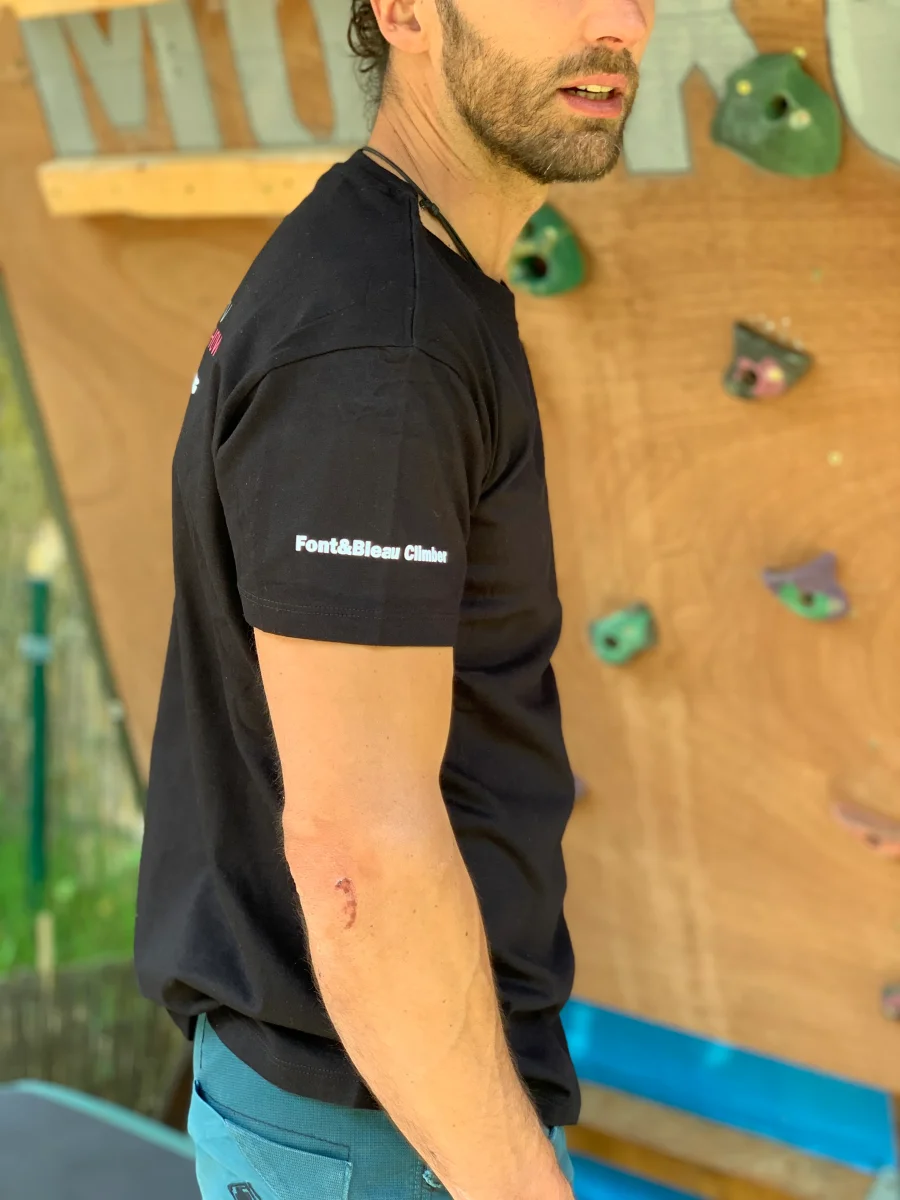 🇫🇷 Flocage Made in France non loin de la forêt ! Manche droite : Font&Bleau Climber avec un touché velours.