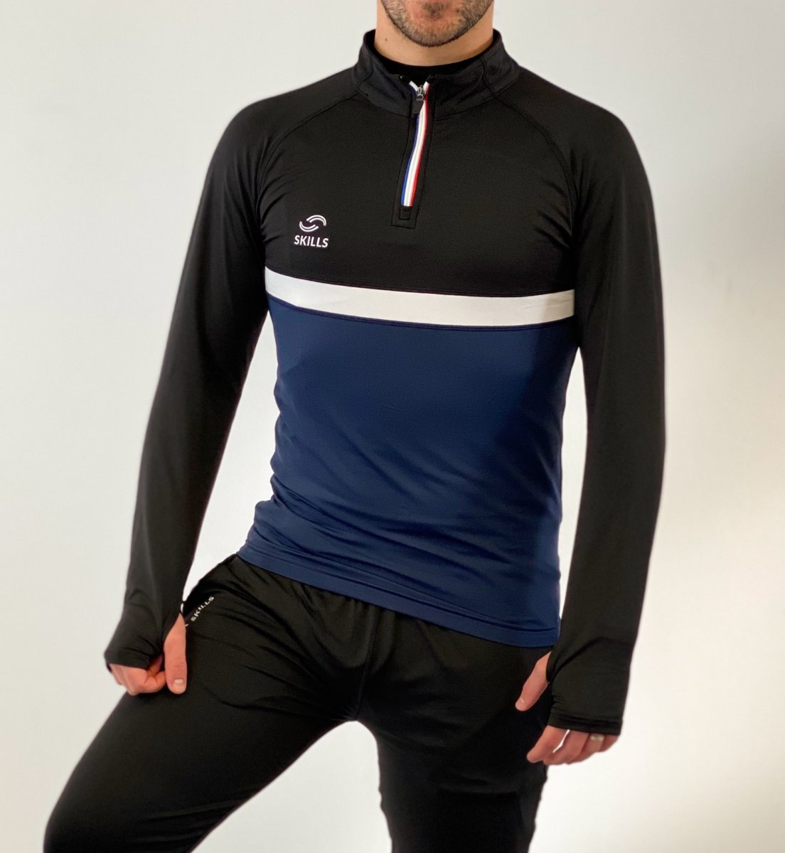 90% Polyester – 10% Elasthanne. 220g/m². La veste idéale pour vos entraînements, sorties runnings, ou pour l’échauffement, aussi bien en salle qu’en extérieur. Matière très élastiquée permettant une grande liberté de mouvement. Le tissu est gratté à l’intérieur, permettant de garder la chaleur tout en restant très léger et agréable à porter. Toucher doux. Manches raglan. Détail de fermeture bleu-blanc-rouge. Passe-pouce pour rester le plus au chaud possible. Coupe mixte ajustée.