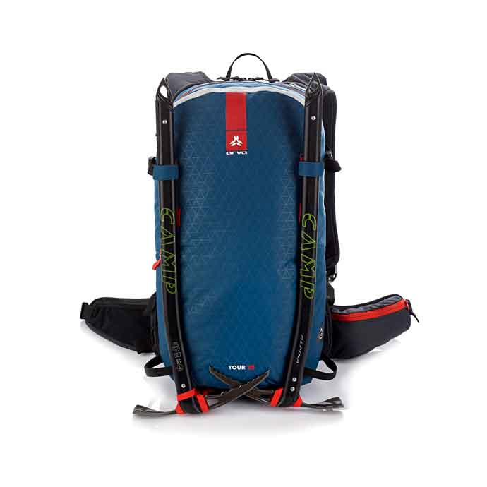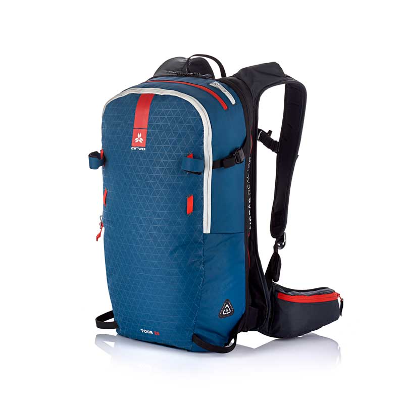 Sac à dos airbag Tour 25, de la marque Arva, coloris bleu. Sac orienté rando car très léger : 1660g sans cartouche.
