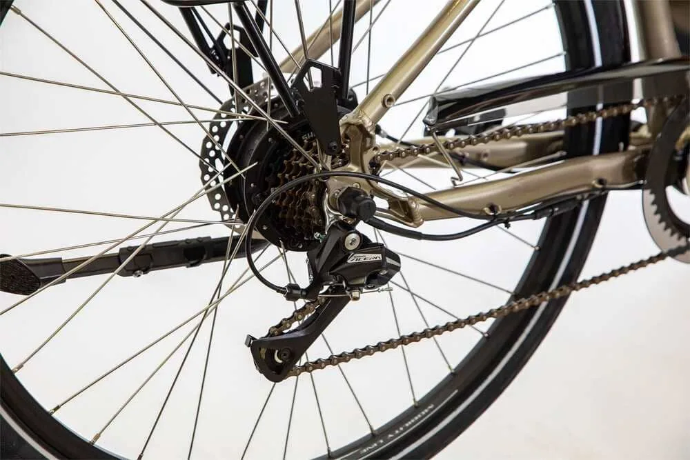 - Son moteur Bafang, robuste et efficace, est situé dans le moyeu arrière et améliore considérablement le confort de conduite.
