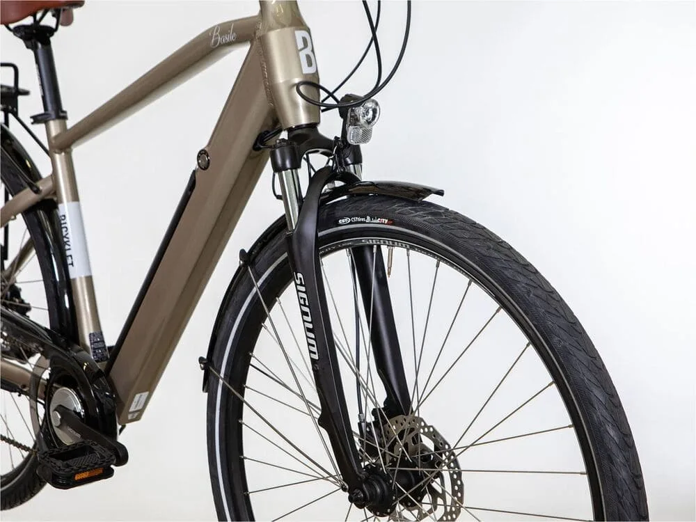 - Grâce à sa batterie de 500 Wh, intégrée au tube diagonal, le Basile dispose d’une autonomie généreuse.