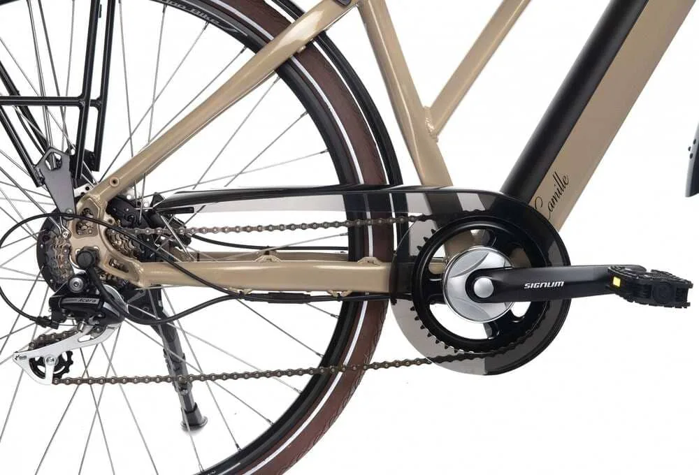 • Grâce à sa batterie de 500 Wh, intégrée au tube diagonal, le Camille dispose d’une autonomie généreuse.