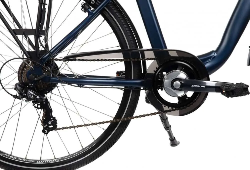Ses porte-bagages avant et arrière, ses garde-boues, sa béquille latérale et son système d’éclairage intégré font de lui un compagnon à deux-roues polyvalent, fiable et ludique. Le moteur Bafang, robuste et efficace, est situé dans le moyeu arrière et améliore considérablement le confort de conduite. Grâce à sa batterie de 500 Wh, intégrée au porte-bagages arrière, le Claude dispose d’une autonomie allant jusqu’à 125 km et permet de rouler jusqu’à 25 km/h (avec l’assistance).
