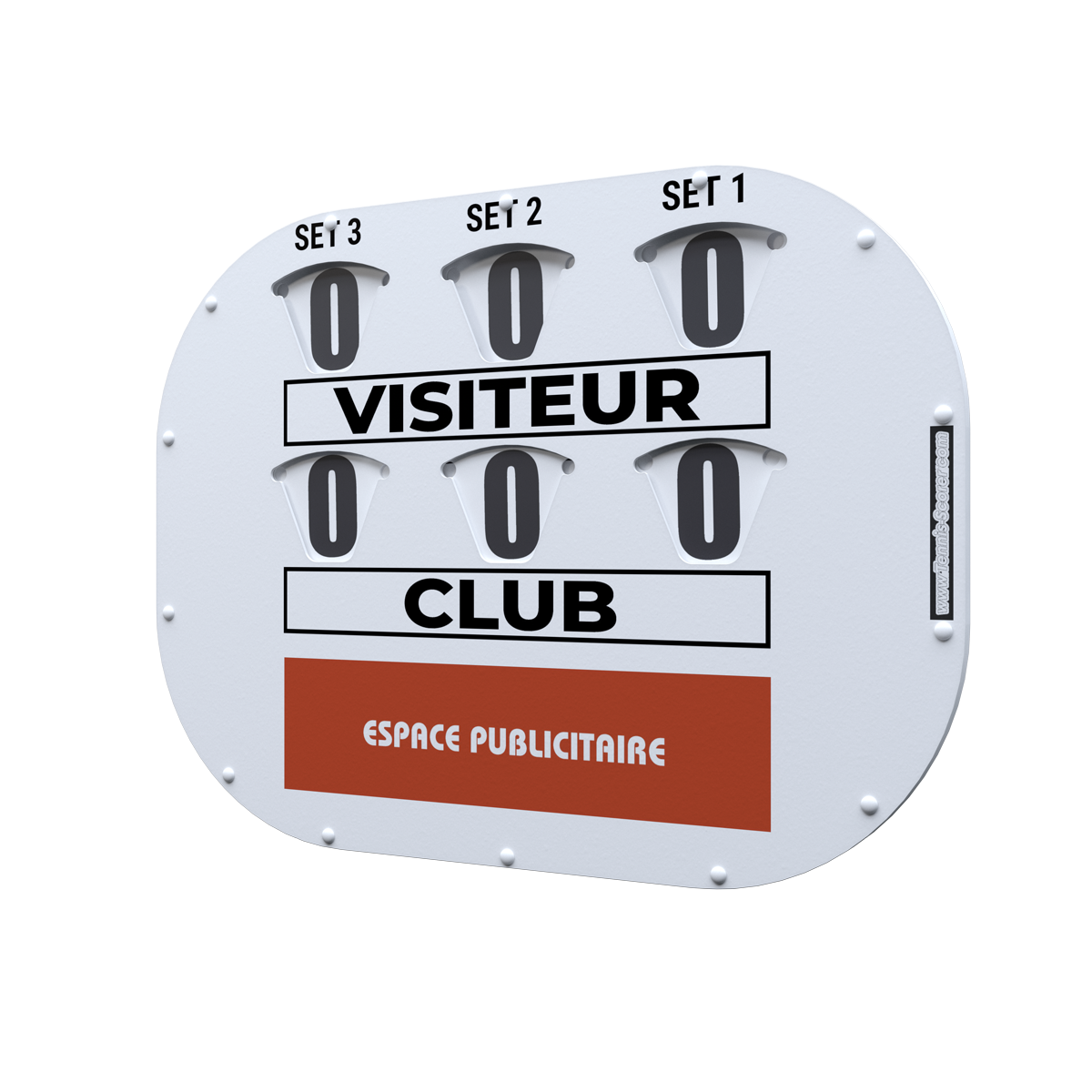 - Como todos los marcadores “TENNIS SCORER”, está diseñado con un espacio publicitario de 60 x 17 cm que puede ser ocupado por el logo de un anunciante/financiero o por el logo del club, o por un adhesivo N° CANCHA, esto permite las canchas, el club y el patrocinador a promocionar. Esto también permite equipar el Club de forma sostenible y sin coste alguno si se encuentra un socio.