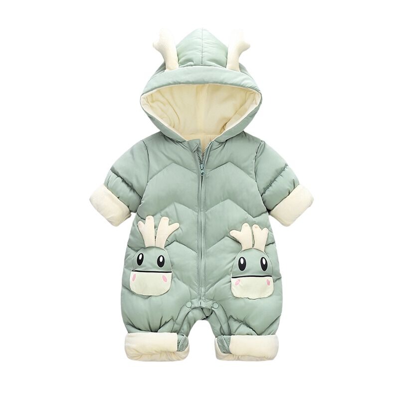 Faites le choix de la chaleur, du confort et du style pour votre bébé avec notre combinaison de ski bébé intégrale. Cette pièce mignonne est disponible en trois couleurs vives : vert, bleu et rouge. Elle est agrémentée de petites cornes sur la capuche et de personnages adorables sur les poches, conférant à votre petit un look unique et craquant sur les pistes de ski.