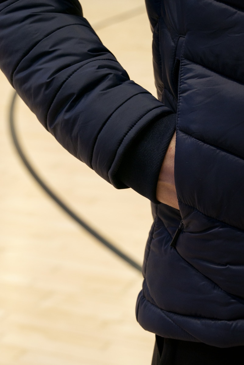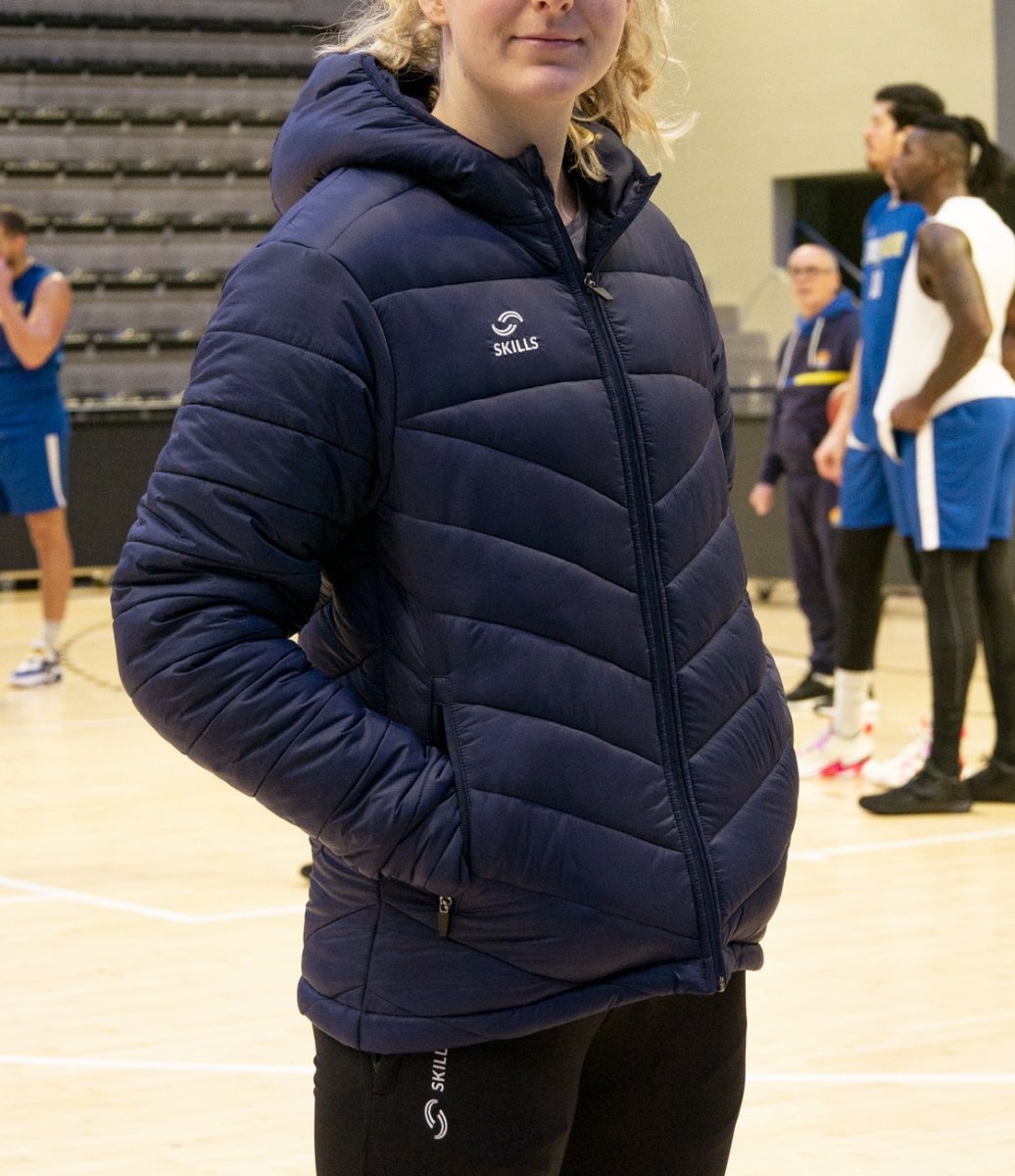Doudoune à capuche : 100% polyamide. Garniture intérieure polyester. Chaude et ultralégère. Deux poches zippées à l’avant. Logo Skills brodé.