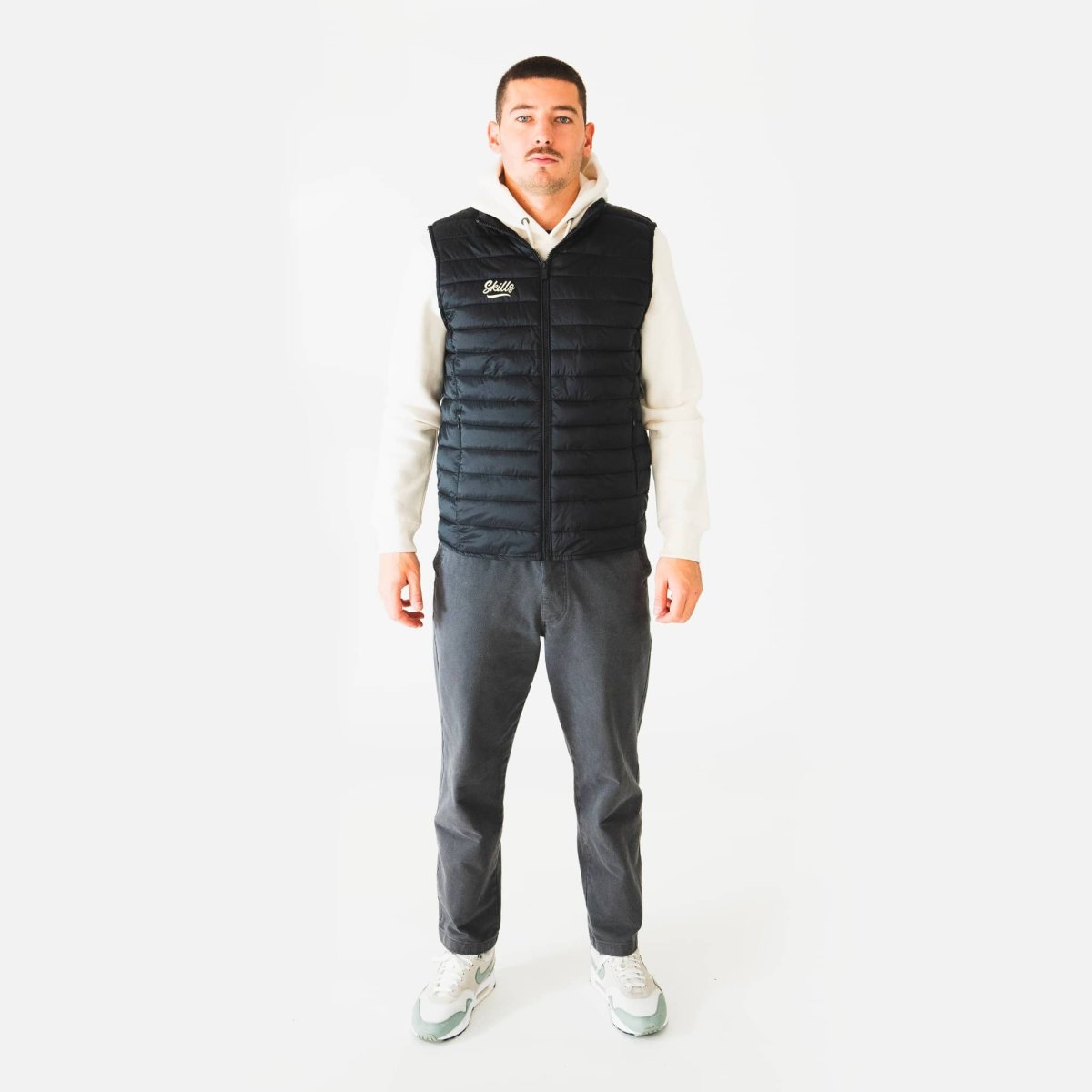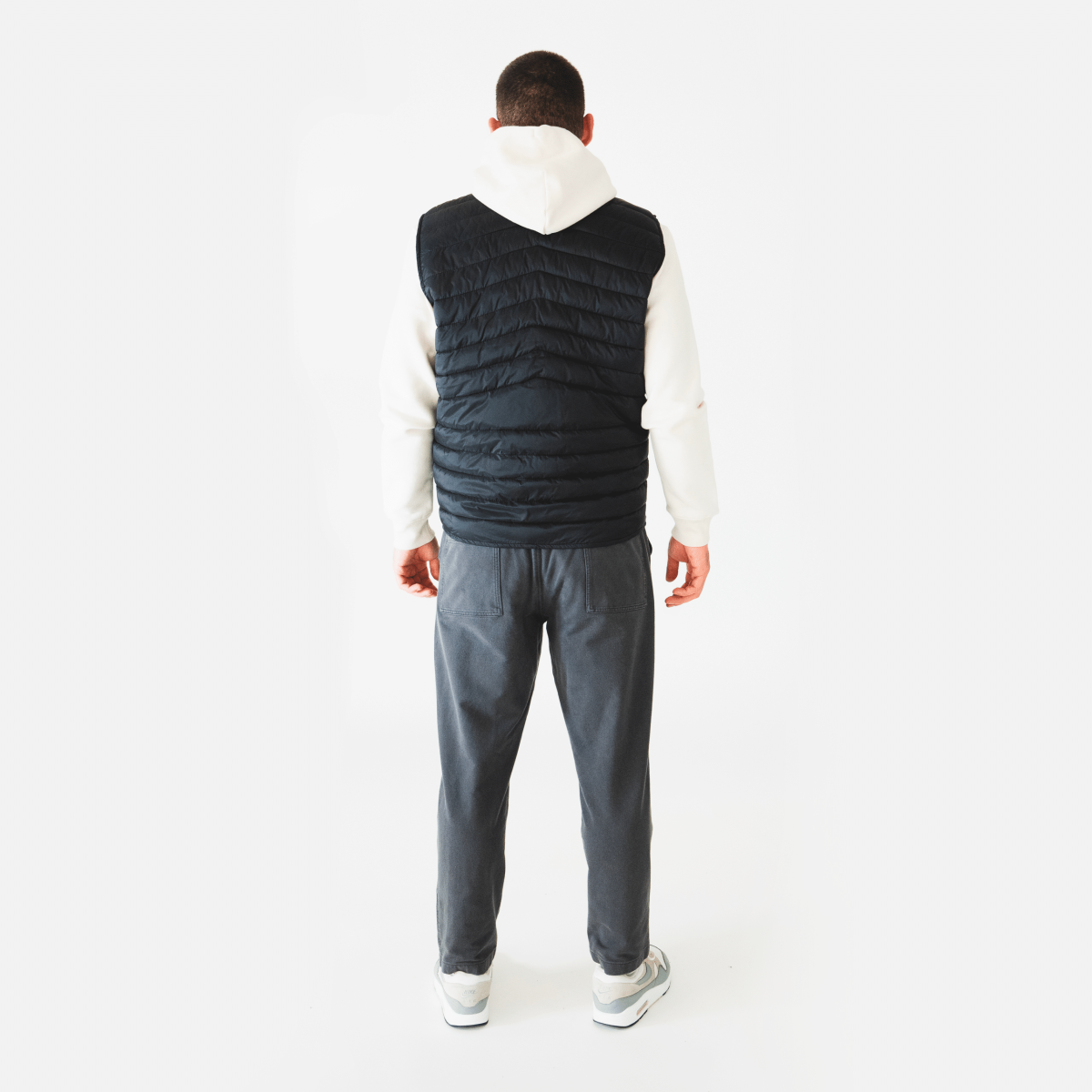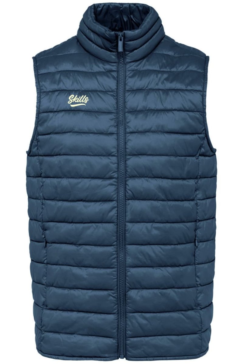 Bodyxarmer recyclé léger 35g, 100% polyamide recyclé. Rembourrage effet duvet en 50% Sorona® et 50% polyester recyclé. Deux poches intérieures.