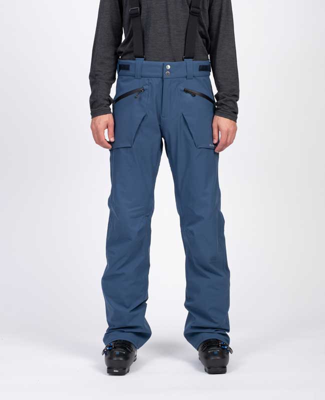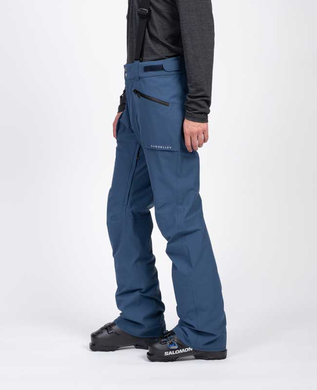 Pantalon de ski homme Fordal, de la marque française Sun Valley, coloris bleu. Léger et confortable. Look original grâce à ses deux poches plaquées, fermées par un zip étanche.