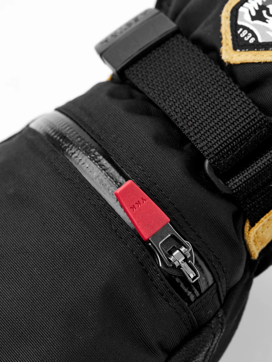 Gant de ski chaud et résistant. Membrane CZone imperméable et respirante. Revers en tissu polyamide coupe-vent et respirant. Le cuir de chèvre imperméabilisé et durable offre une bonne adhérence. Le bout des doigts présente un design Wolf Paw pour plus de durabilité. Doublure polaire avec isolation synthétique chaude (Fiberfill). Poche avec zip étanche. Manchette haute avec cordon de serrage. Ajustement du poignet par velcro. Attache pour dragonnes Hestra (sangle de poignet).