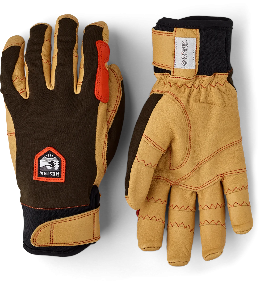 Un gant d’extérieur souple et résistant. La conception Ergo Grip offre une mobilité maximale et une sensibilité du bout des doigts. Paume en cuir de chèvre traité pour l’adhérence et la durabilité. Revers en tissu stretch GORE-TEX Infinium™ coupe-vent et respirant. Doublure en polyester brossé doux. Manchette en Néoprène avec ajustement velcro. Attache pour dragonnes Hestra.