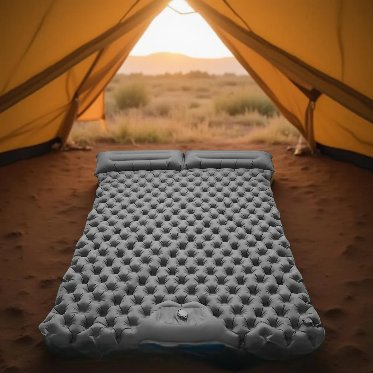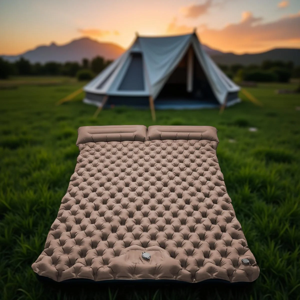 Le Matelas gonflable 2 personnes – Camping™ élimine ce problème grâce à son système de gonflage automatique intégré . Plus besoin de pompe supplémentaire ni d’efforts physiques épuisants. En quelques minutes, et quelques pressions des mains ou des pieds, votre lit douillet est prêt. Ses dimensions généreuses de 120 cm x 200 cm offrent un espace confortable pour deux , avec des oreillers intégrés qui apportent ce petit plus de confort que l’on ne trouve pas habituellement en camping.
