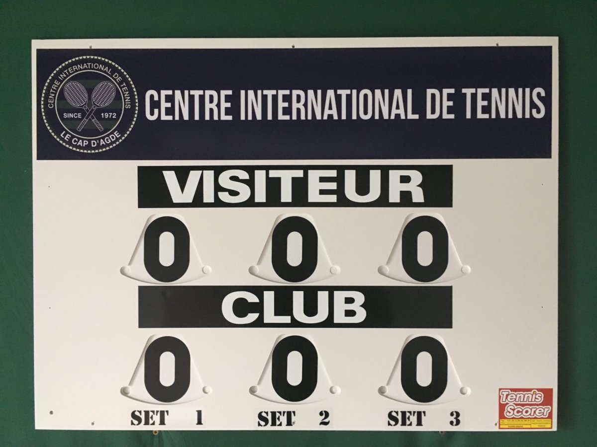 Cadrage automatique des chiffres de 0 Ă 7, sur 3 SETS MatĂ©riau : PVC blanc inaltĂ©rable, Tous temps è Peut rester dehors toute l’annĂ©e Hauteur des chiffres : 12 cm, Largeur des chiffres : 2.5 cms Lisibilité du tableau : + 50 m. Indication des numĂ©ros de SET. LivrĂ© avec : 2 Plaquettes (pour affichage manuel des Noms et Classements des joueurs) + 1 AdhĂ©sif publicitaire de 78×17 cms permettant le financement possible du tableau par un partenaire sponsor, ou l’affichage du nom et du logo du Club, ou le numĂ©ro du Court (ou les2) GARANTIE 5 ANS Dimensions tableau : L. 80 x h. 60…