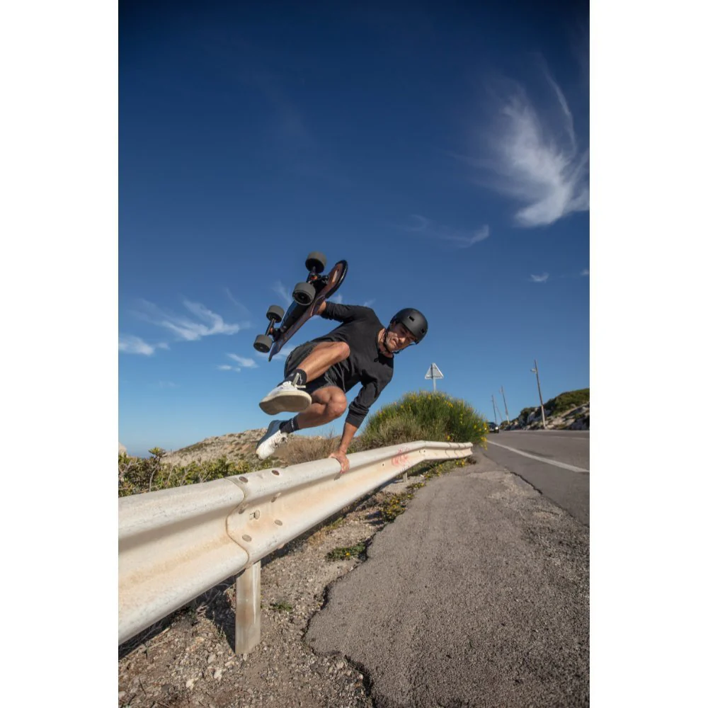 Le plateau Nimbus d’inspiration rétro fait du Nimbus un skate électrique maniable et polyvalent. Le tail large permet de franchir facilement les obstacles, tourner court et rester maniable à faible vitesse. Le plateau est rigide et apporte une excellente réactivité.
