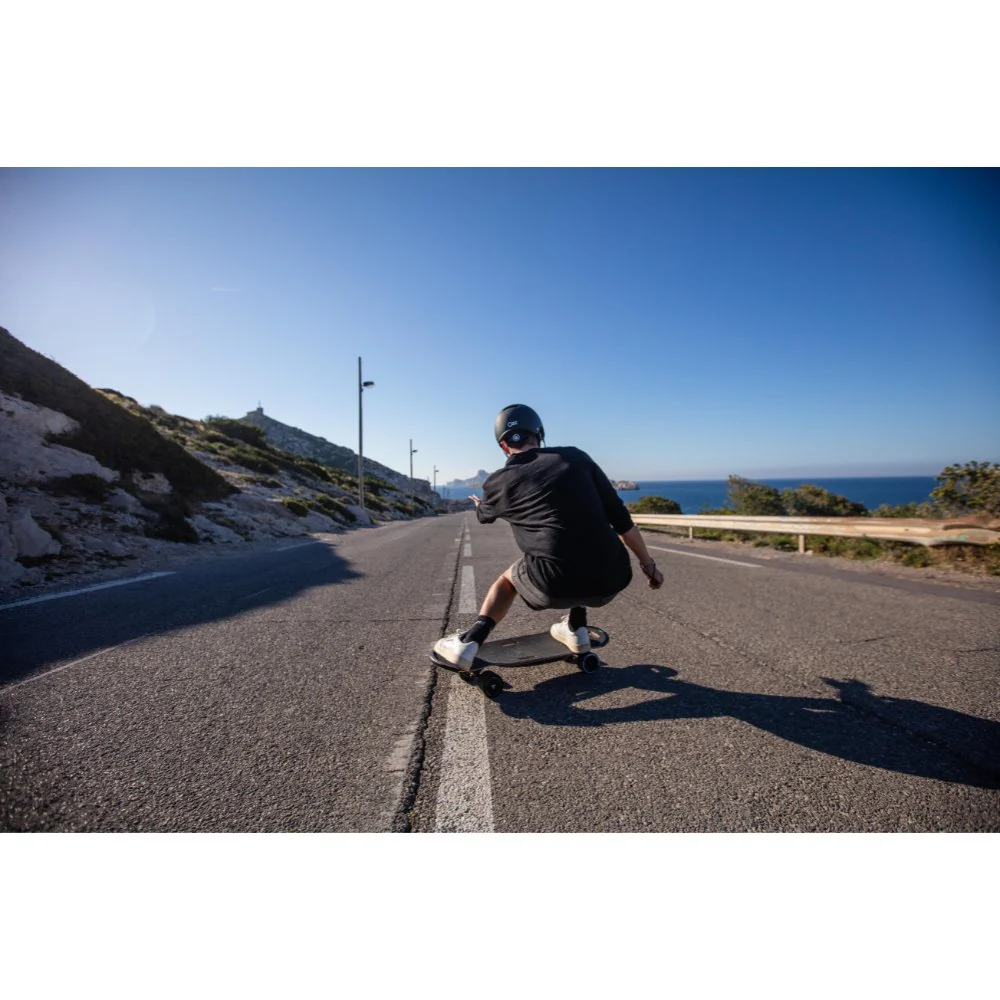 Le plateau Nimbus d’inspiration rétro fait du Nimbus un skate électrique maniable et polyvalent. Le tail large permet de franchir facilement les obstacles, tourner court et rester maniable à faible vitesse. Le plateau est rigide et apporte une excellente réactivité.