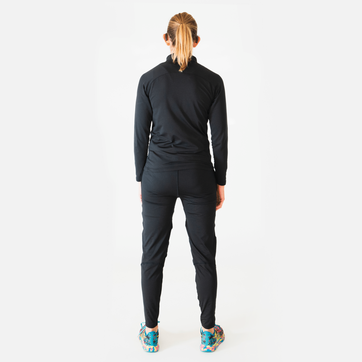90% Polyester – 10% Elasthanne. 220g/m². Matière extensible, adaptée à l’effort. Intérieur gratté, deux poches zippées. Coupe ajustée mixte.