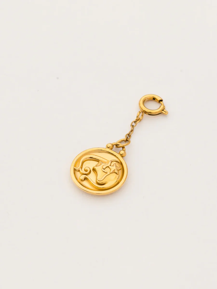 Ce pendentif doré, conçu pour être porté sur un maillot de bain, est une nouveauté alliant style et astrologie. Il représente la Vierge d’un côté et sa constellation de l’autre.