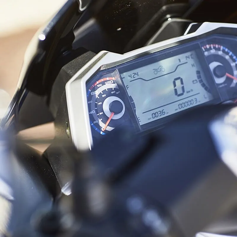 | Feux LEDS avant & arrière / Prise USB / Coffre sous selle / Démarrage sans clé / Tableau de bord analogique LCD |
