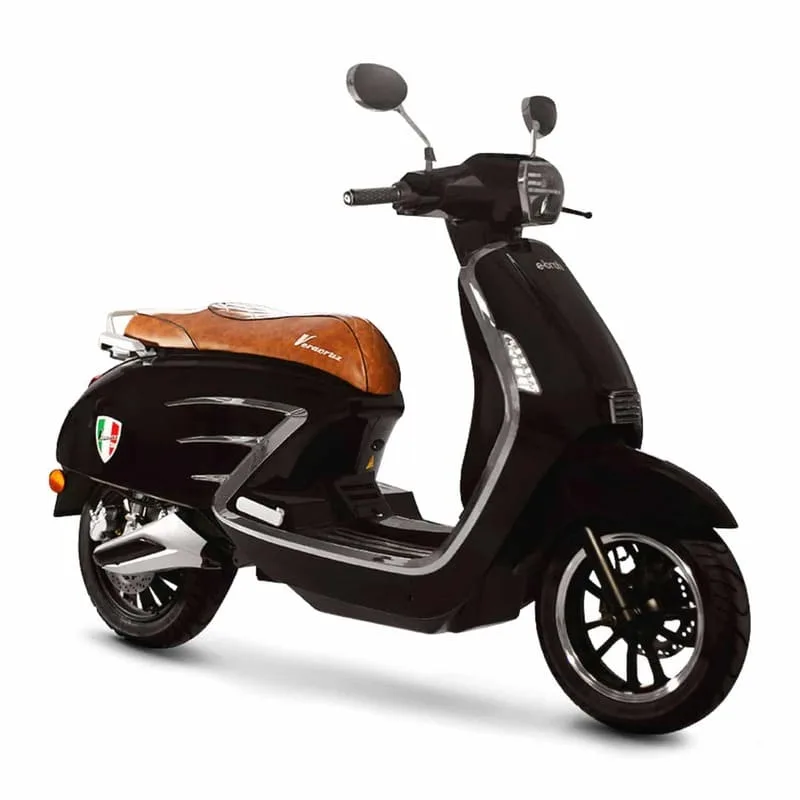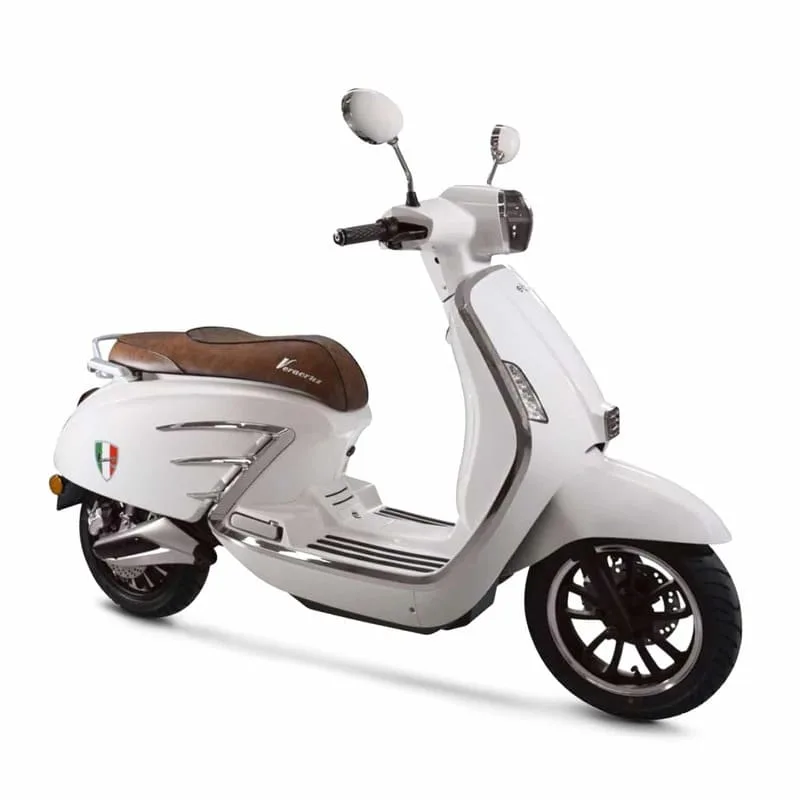 Le Scooter electrique 125 Ebroh Veracruz 5K est un scooter électrique équivalent 125 cm3 néo rétro. Idéal pour des trajets en ville avec style.