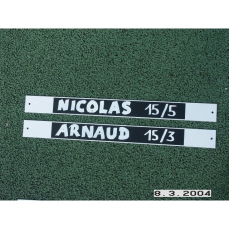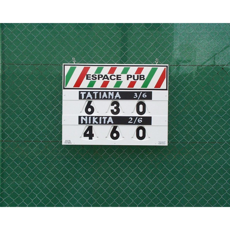 Set mit 4 schwarzen Platten für das Kompaktmodell (d. h. erforderlich für 2 Kompakttafeln): Die Platten ermöglichen die Anzeige der Namen und Ranglisten der Spieler mit Kreide oder Kreidemarker. Sie werden an den Stellen der Besucher- und Vereinsaufkleber auf der Tafel positioniert und mittels Schrauben aufgehängt.
