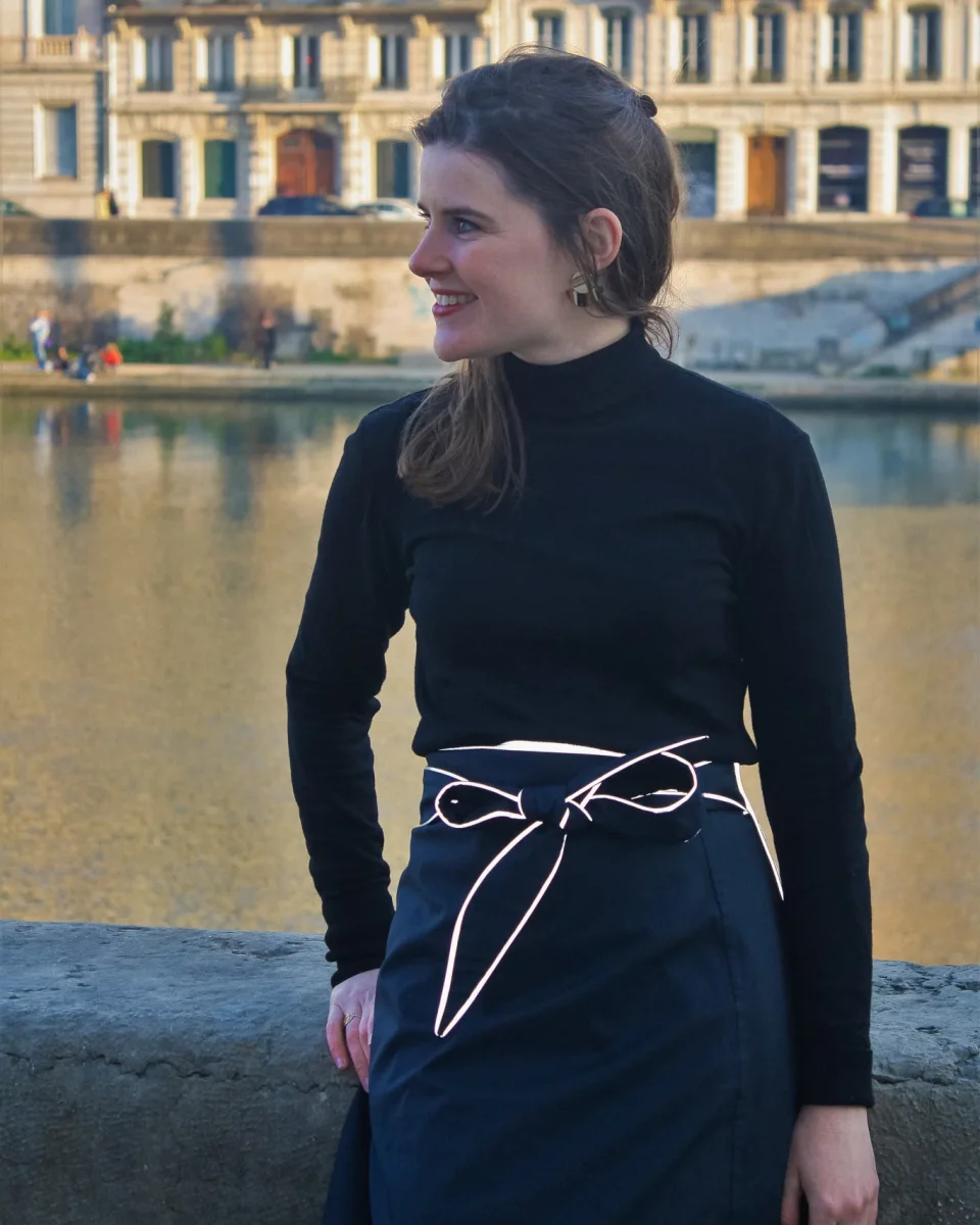 Pensée à la manière d’un tablier, la sur-jupe Liesse se noue et se dénoue en un tour de main à la manière d’un tablier et elle vous assure un confort maximal quelle que soit votre tenue. Découvrez ses fonctionnalités intelligentes.