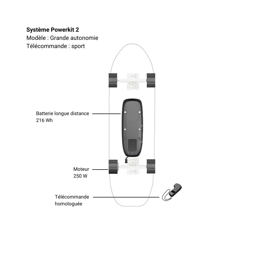 Le système Powerkit 2 est notre nouvelle technologie brevetée permettant d’électrifier le skateboard, cruiser ou longboard de votre choix Il ouvre un nouveau champ des possibles dans le monde de la glisse urbaine.