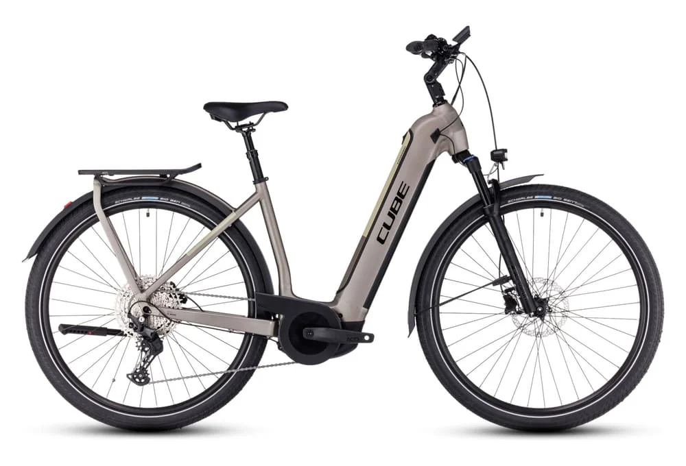 Vélo de Ville Électrique Cube Kathmandu Hybrid Pro 750 Easy Entry Shimano Deore 11V 750 Wh 700 mm Beige Gris Flash Stone 2023