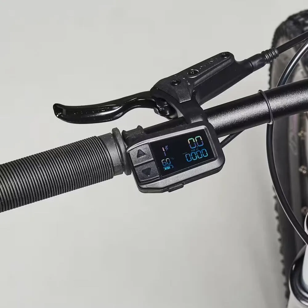 Information disponible : Mode d’assistance actif / Niveau batterie / Vitesse (instantanée, moyenne, maximale) / Autonomie restante / Distance parcourue (total et Trip)