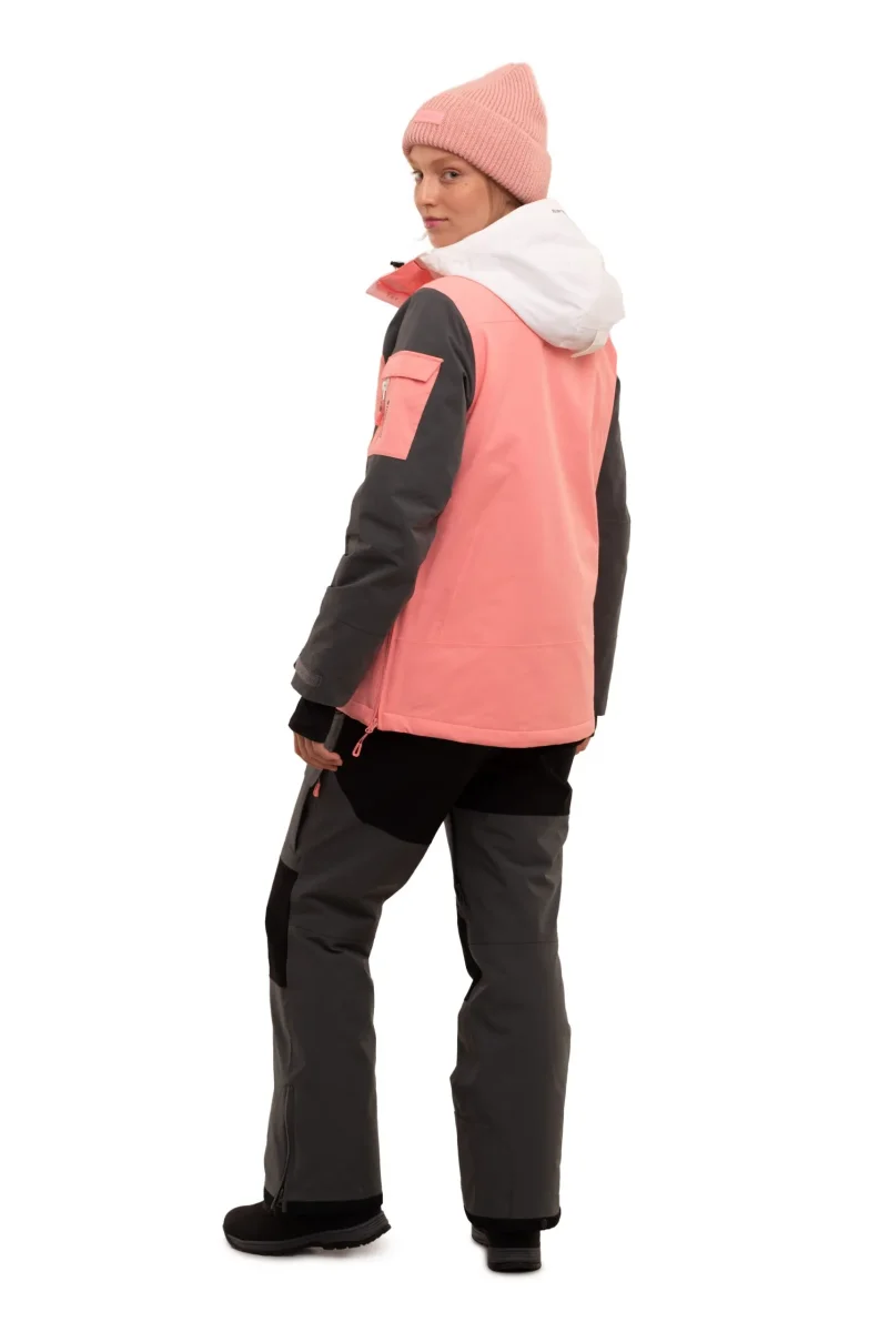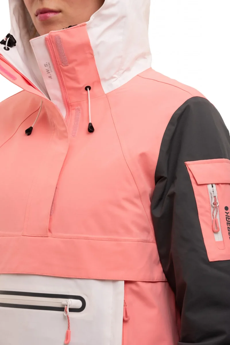 Ce blouson de snowboard a déjà séduit de nombreuses rideuses avec ses manchons en lycra, sa capuche large et sa jupe pare-neige.