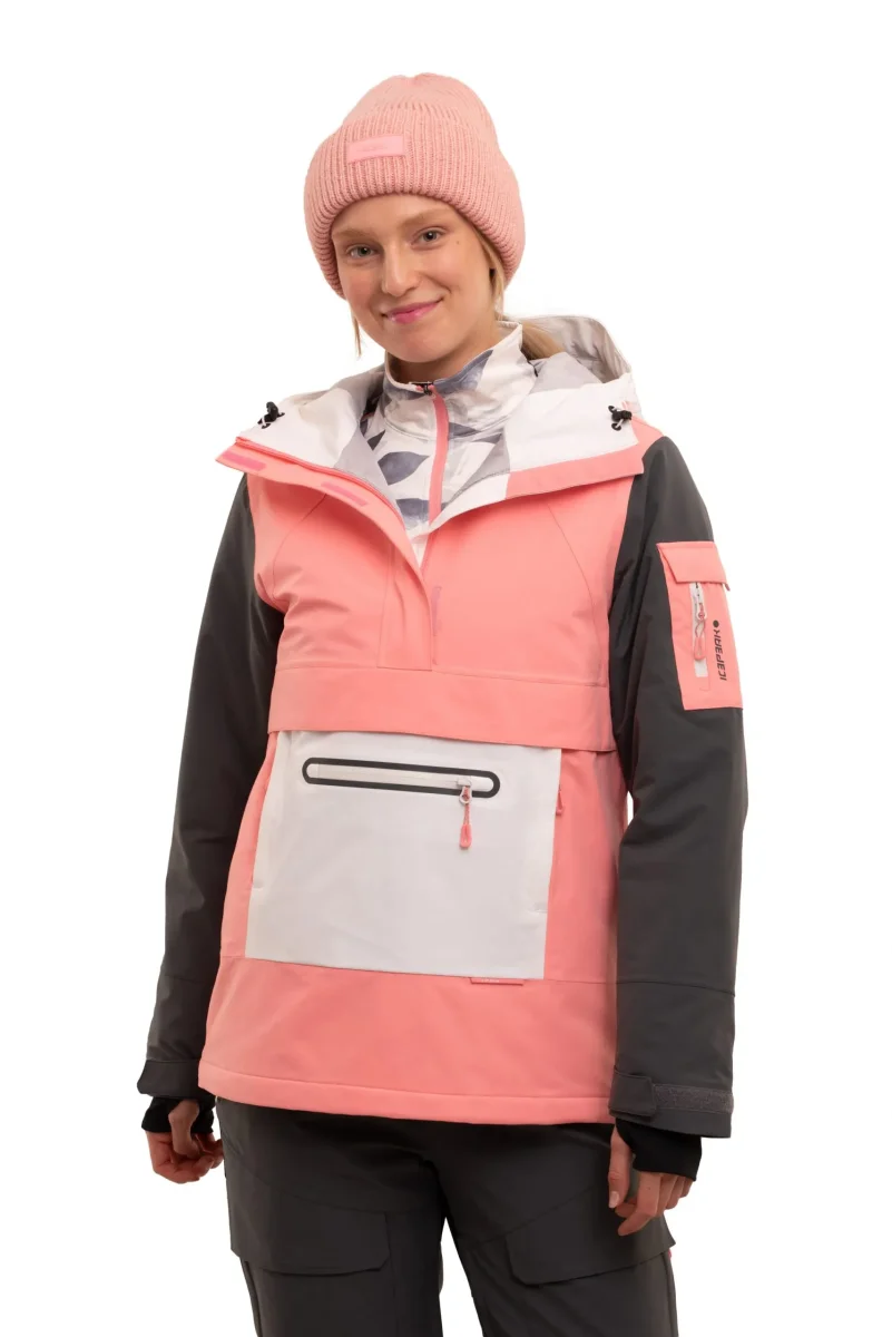 Le modèle Cesena de chez Icepeak est incontournable. Une veste de ski qui s’enfile et protège efficacement du froid. Ce vêtement de style color block séduira les skieuses de tout âge.