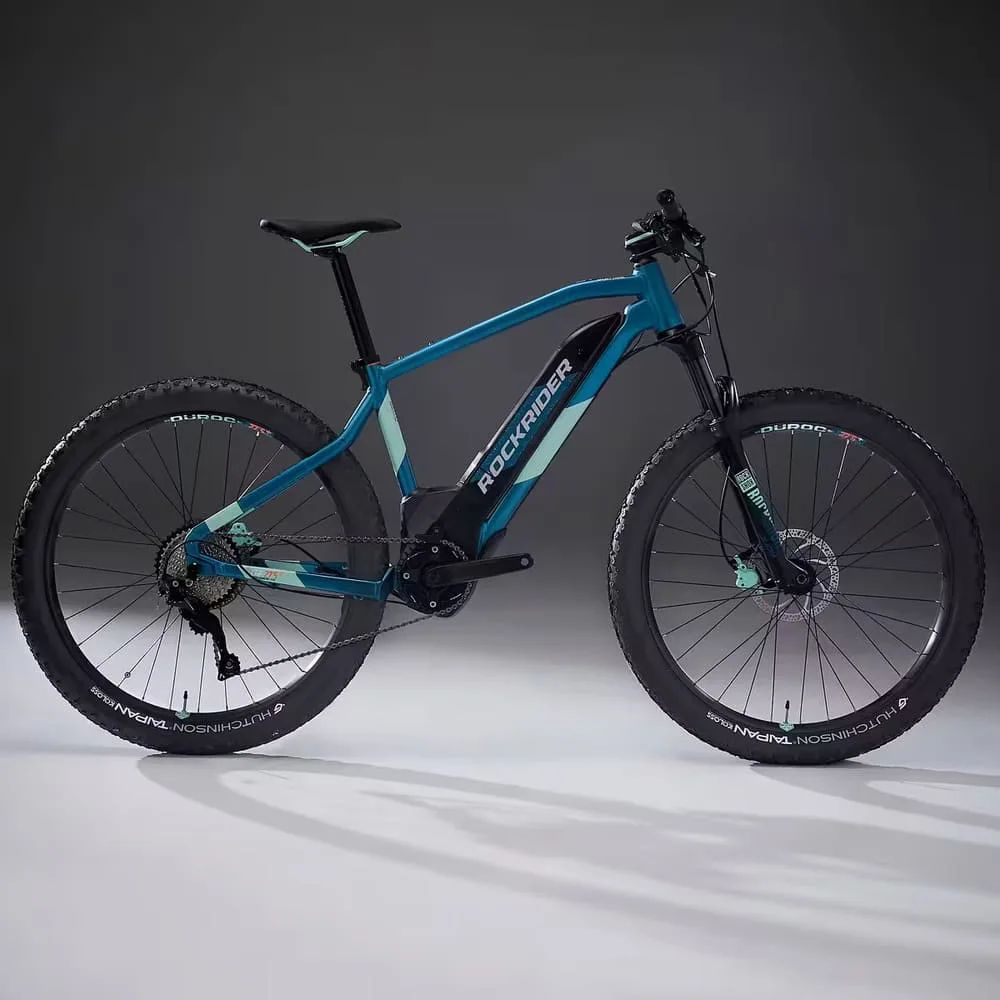 Le cadre du VTTAE ROCKRIDER E-ST900 a été conçu en aluminium 6061 avec des tubes hydroformés. Pourquoi ? Pour que ce VTT électrique soit plus robuste et que la batterie s’intègre bien au cadre.
